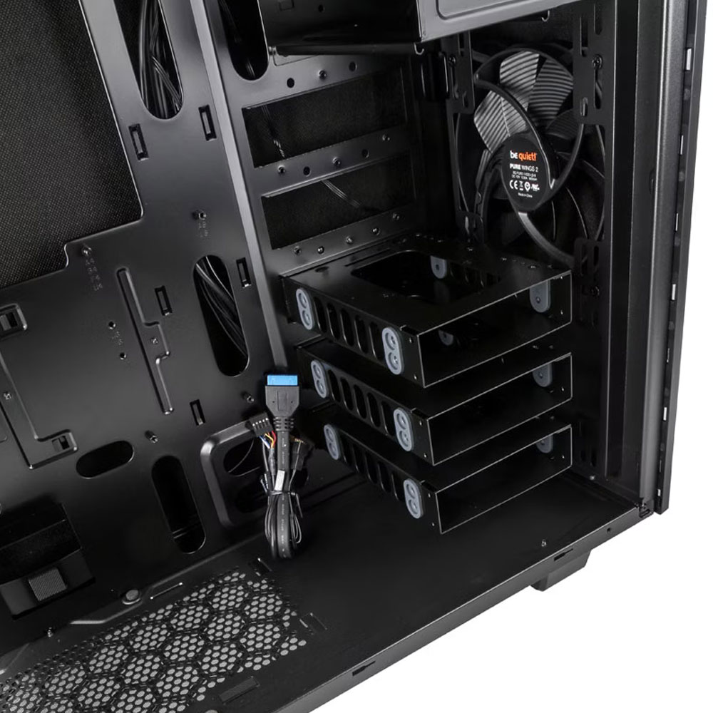 Boîtier format mid-tour très silencieux : 1 ventilateur 120 mm en face arrière + 1 ventilateur 140 mm en face avant (fournis en standard).2 baies 5.25" (face avant), 7 baies d'extension (face arrière).