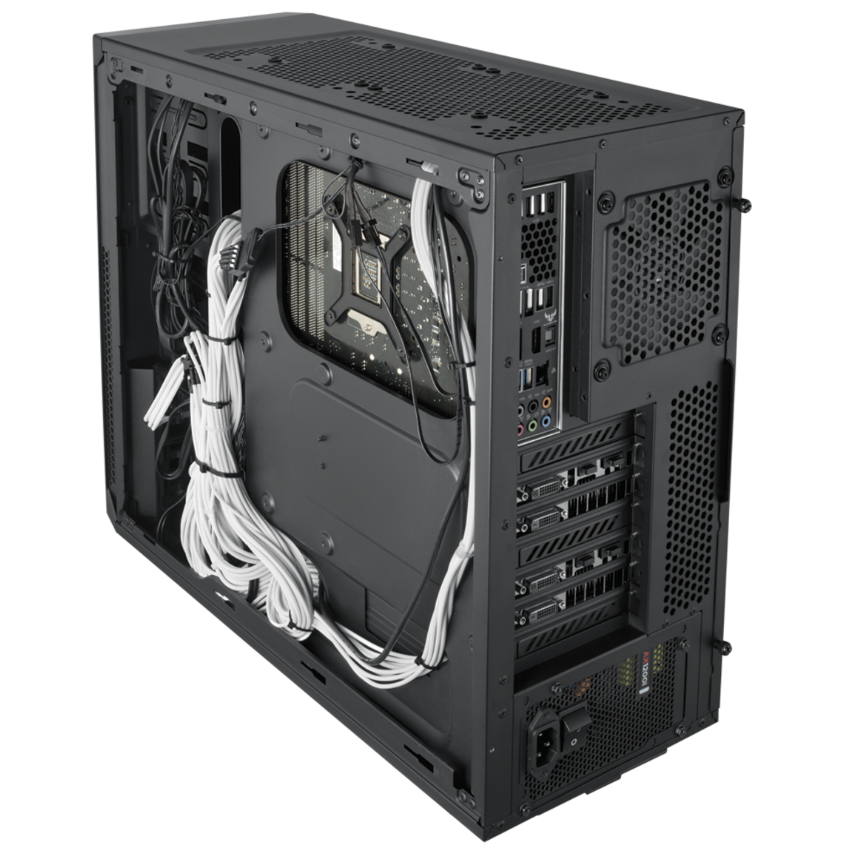 Boîtier format mid-tour très silencieux : 1 ventilateur 120 mm en face arrière + 1 ventilateur 140 mm en face avant (fournis en standard).2 baies 5.25" (face avant), 7 baies d'extension (face arrière).